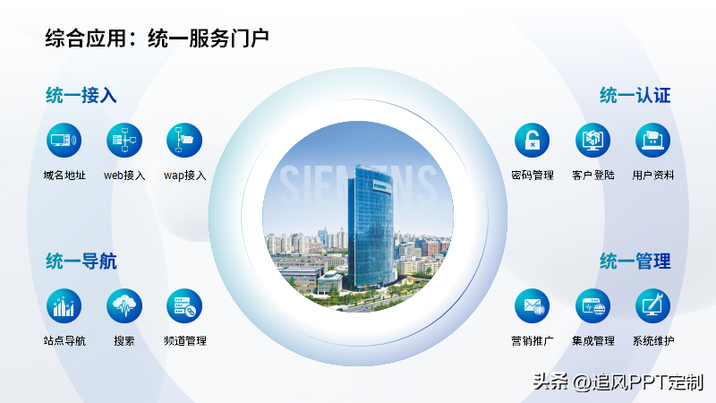 我们可以给每一个内容点加上图标,增大整体面积,采用环绕布局,中间不至于太空
