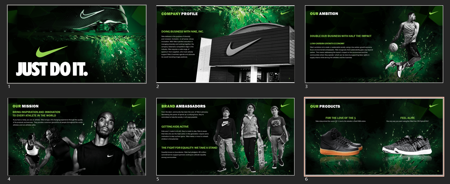 就连PPT,也都做的动感十足,这份耐克的PPT,真的太酷了!