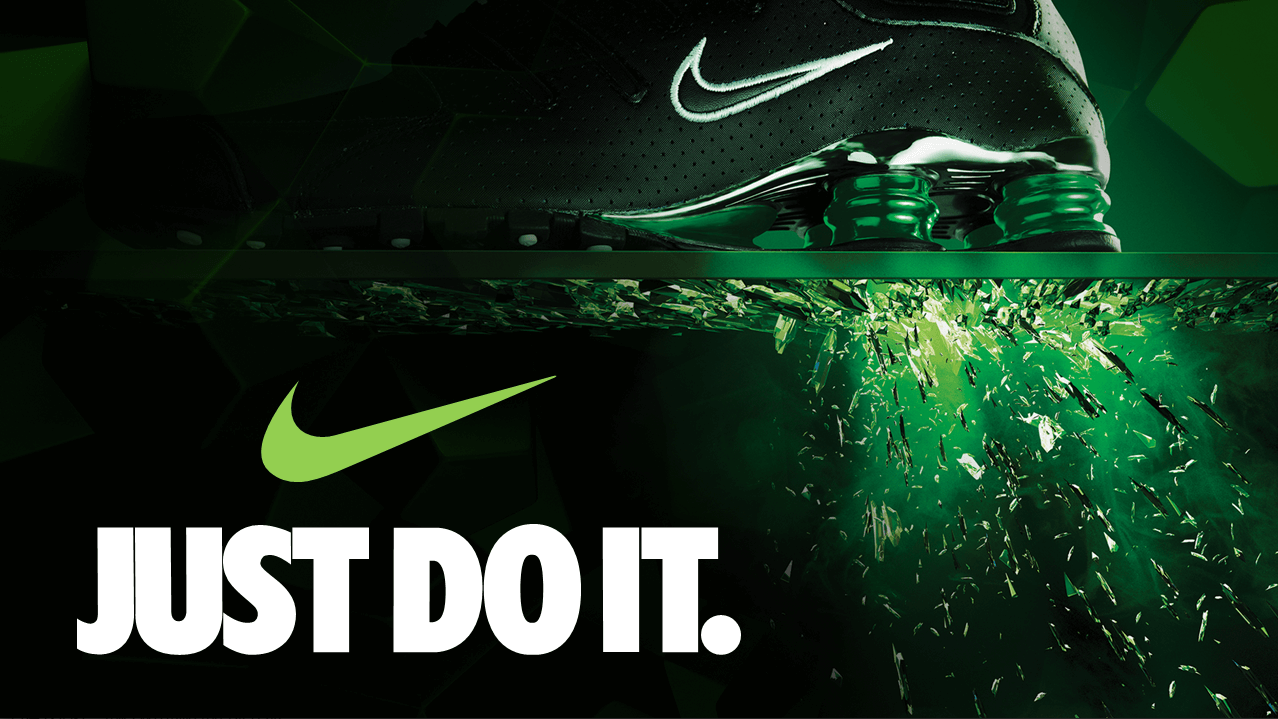 延续上一页的绿色深海模式,将耐克门店做了抠图处理,营造出一种立体空间感,好像这个店本来就在海里一样,非常的震撼。