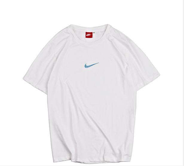 这个logo的传播度非常的广,很多人都非常喜欢,就算是一件普普通通的白T,只要加上耐克的logo,立马就与众不同了: