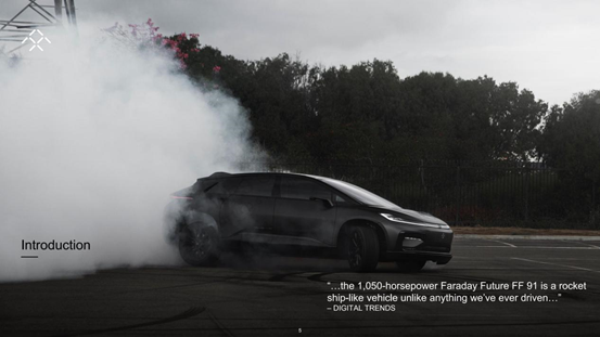 第五页:引用了媒体Digital Trends的话:拥有1050马力的FF 91 ,开起来就像火箭一样。