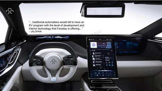 里面有一些关键信息,包括借壳上市将在二季度完成,FF 91将在借壳上市成功后12个月上市。对FF将来的估值是26.22亿美元,该估值是建立在2024年105亿美元收入、9.14亿美元息税前收益的预期上(按当下汽车业尤其是电动汽车业的估值来看,这个指标不高)。