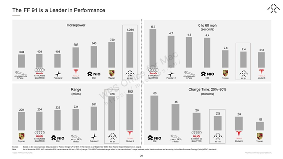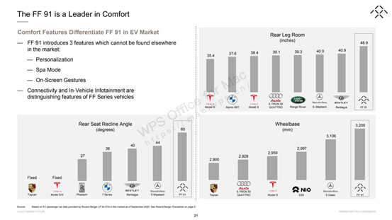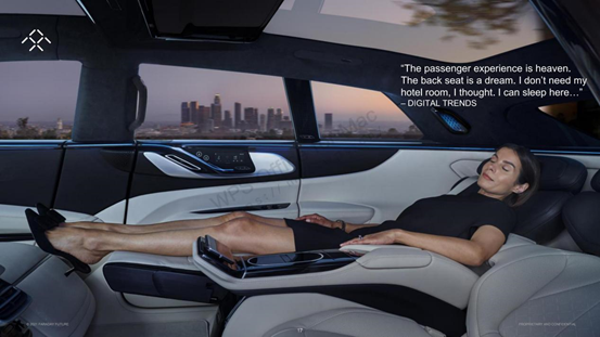 第二十页、二十一页:FF 91如何“吊打”其它品牌,包括动力、加速能力、续航、充电时间和舒适性。如果这些功能都能实现,那基本就是“拳打宝马奔驰奥迪保时捷,脚踢蔚来理想小鹏特斯拉”。