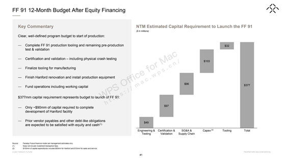 第四十一页:FF 91还需要在未来12个月投入3.77亿美元,才能上市。