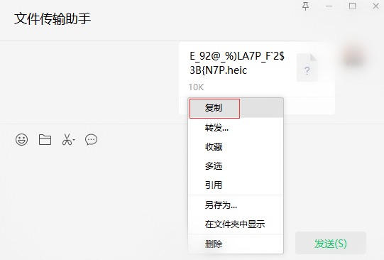 可以在手机将图片发送到微信的传输助手里,然后在电脑打开并复制,这个时候粘贴到聊天框的图片就变成了jpg格式的图片了。