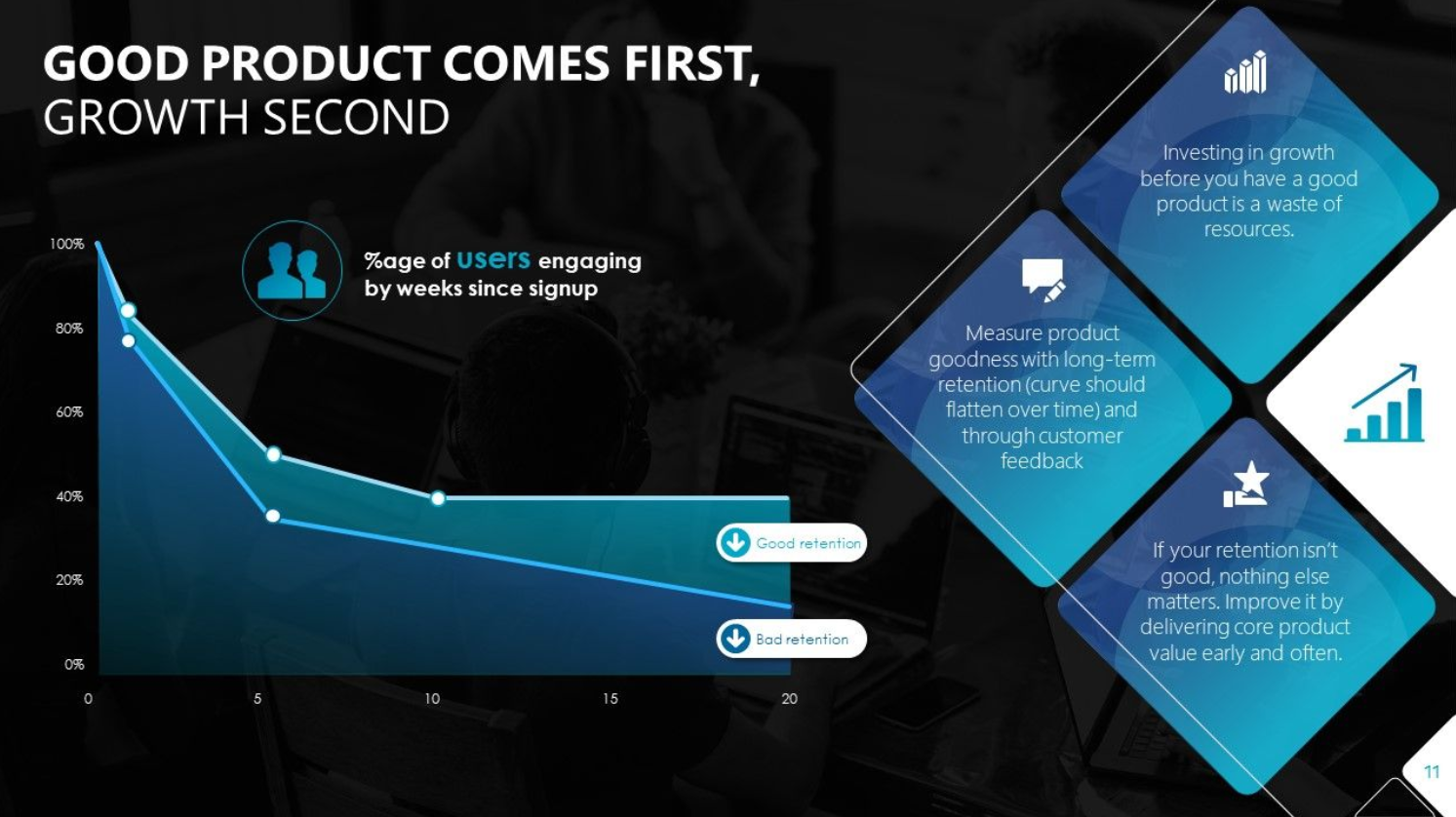 所以,我们做一份PPT的时候,尽量让一个设计元素重复出现,沿用色彩相近的配色方案,或者一种形状的反复出现。