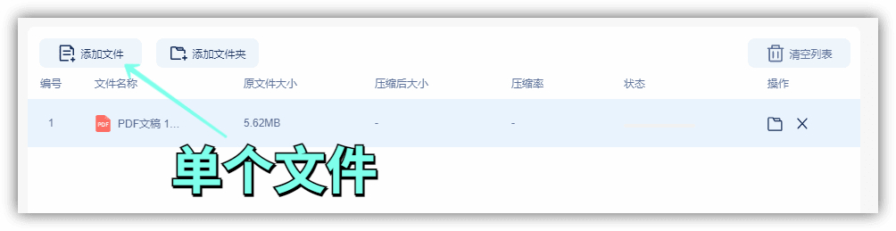 第二步:如果你的文件不多,点击【添加文件】按钮,将PDF文件上传到右侧空白区域;