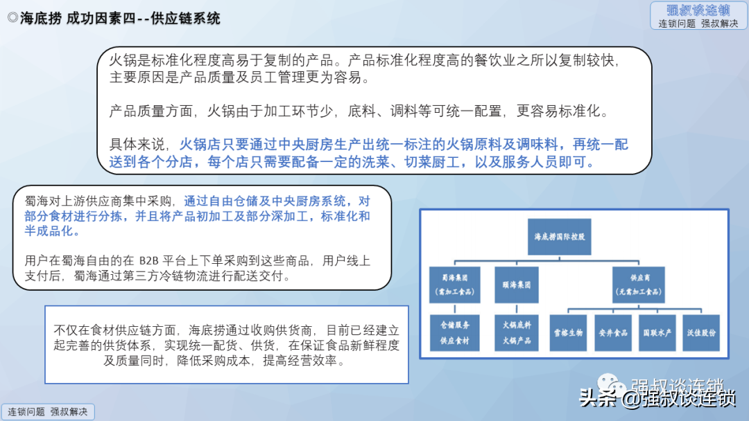 而这连锁行业案例解读50张PPT,讲述了连锁经典案例的成功因素:海底捞、瑞幸咖啡、孩子王母婴、百果园、美宜佳、喜茶、和府捞面、锅圈食汇、名创优品、绝味鸭脖;
