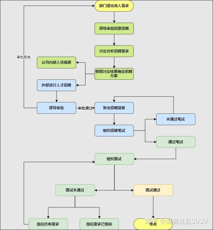 我们高中都学过排列组合,有一种最笨的方法,叫做穷举法,就是把所有可能性的情况列出来,实际上逻辑也是可以穷举的。比如下图是一个公司招人的流程图,其实只是把各个环节各个可能性列出来就可以,这是任何一个普通人都可以做到的,核心就是你别恐惧这个,穷举法,熟能生巧,你也可以有逻辑。