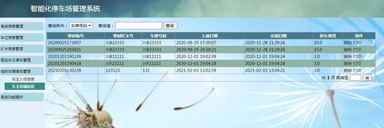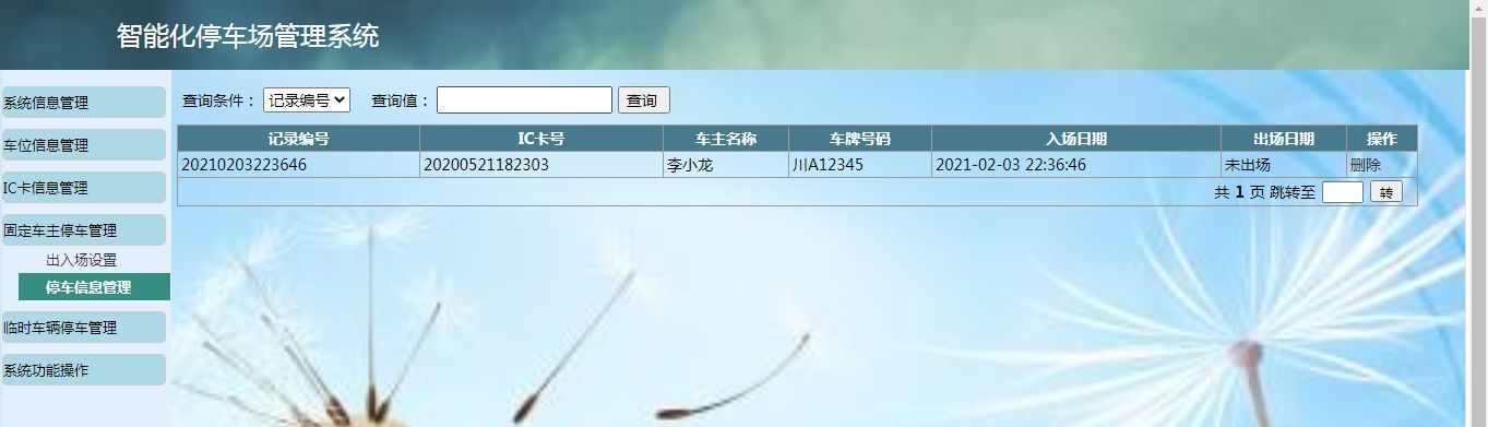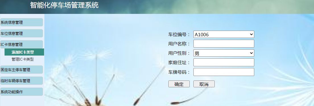 基于Web停车场管理系统主要用于实现停车场相关信息管理,基本功能包括:系统信息管理模块、车位信息管理模块、IC卡信息管理模块、固定车主停车管理模块、临时车辆信息管理模块、系统功能操模块等。