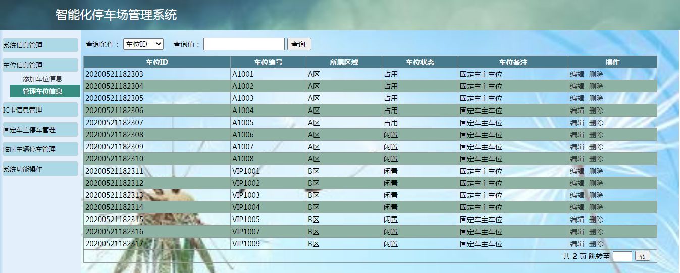 (2)车位信息管理模块:车位信息的增加、删除、修改和查询。