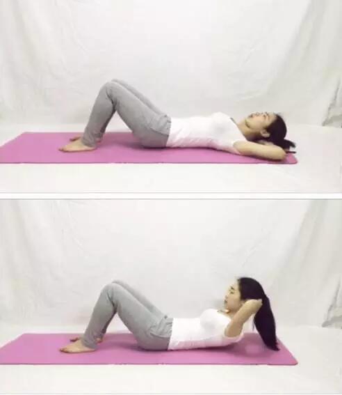 做好屈髋屈膝准备动作,双手在颈后托住头部,然后腹肌发力缓慢抬高头颈部,在最高点保持3-5秒后回到准备动作,然后重复练习。