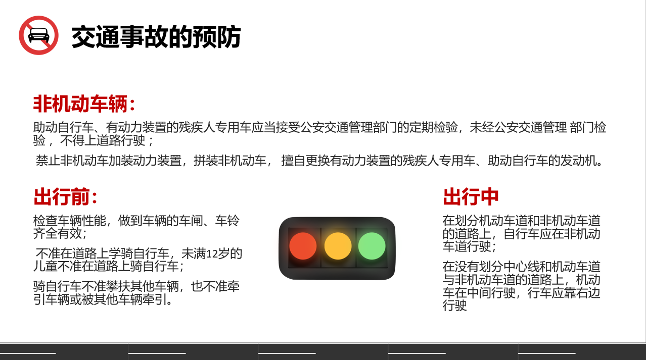 メ包含内容有摩托车安全事故,交通事故预防,非机动车安全,行人出行安全四项内容。メ