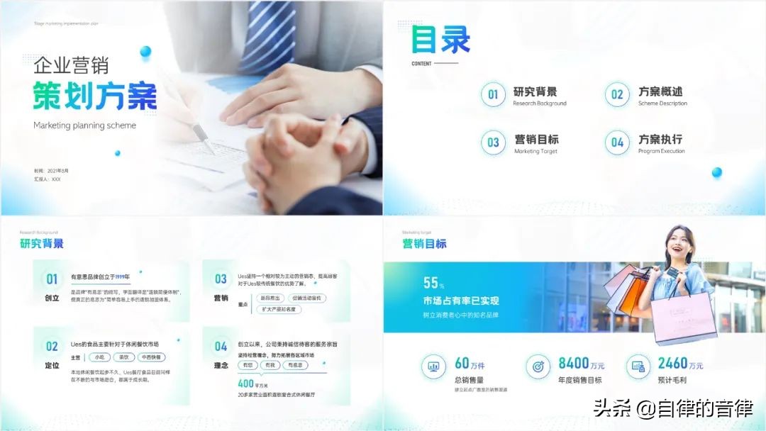 PPT 的内容是企业策划方案,可是作者却套了类似毕业答辩模板。