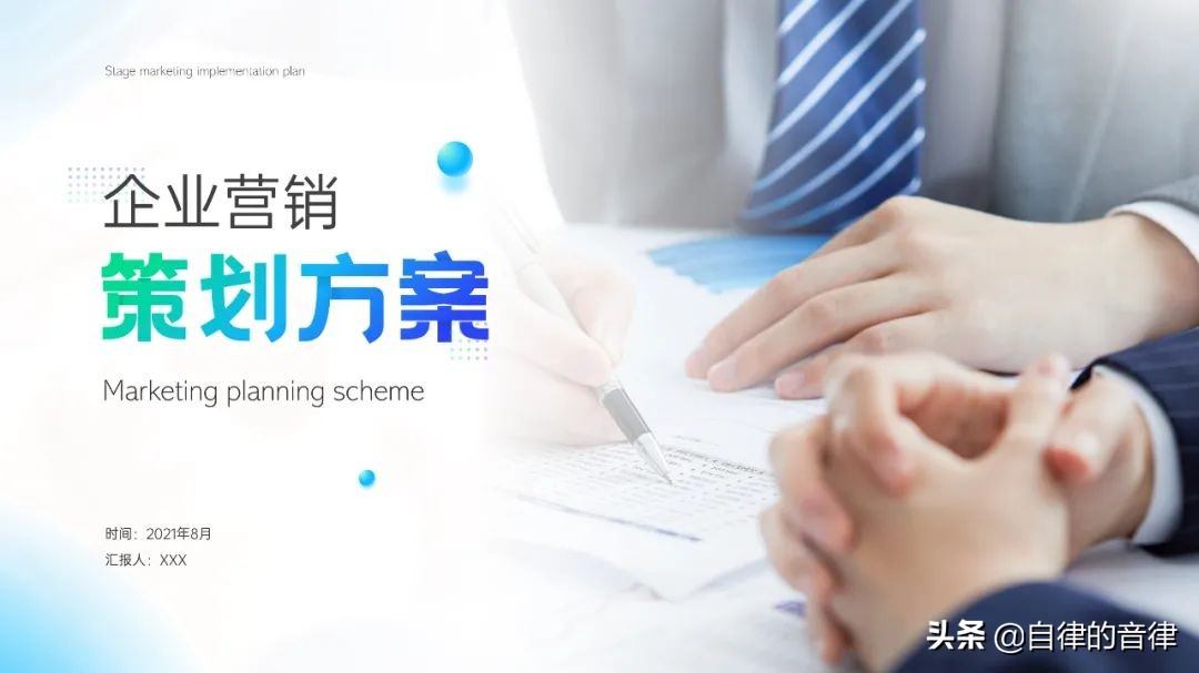 先说配色,根据内容我们可以知道,这是一份企业营销策划方案。