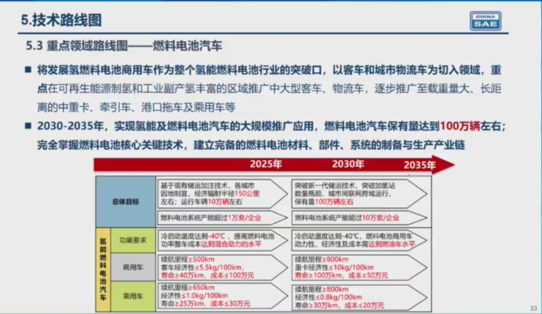 2030年,冷启动温度零下40度,乘用车续航里程大于800公里,成本小于20万元,达到燃油车水平。