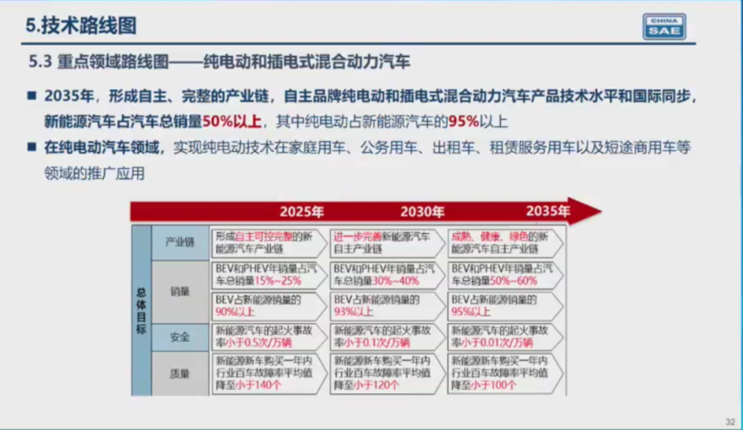 新增了新能源汽车起火事故在2025年要小于0.5次/万辆,新车购买一年内行业百车故障率PPH小于140个,2030年和2035年加严。