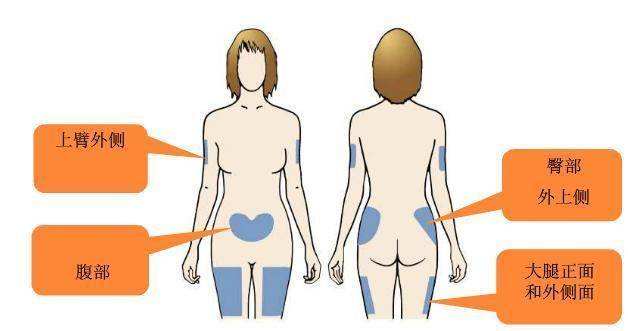 ⑨腹部是优先选择的注射部位,注射至肌肉层的风险小而且吸收最快,吸收速度恒定,适合自我注射!