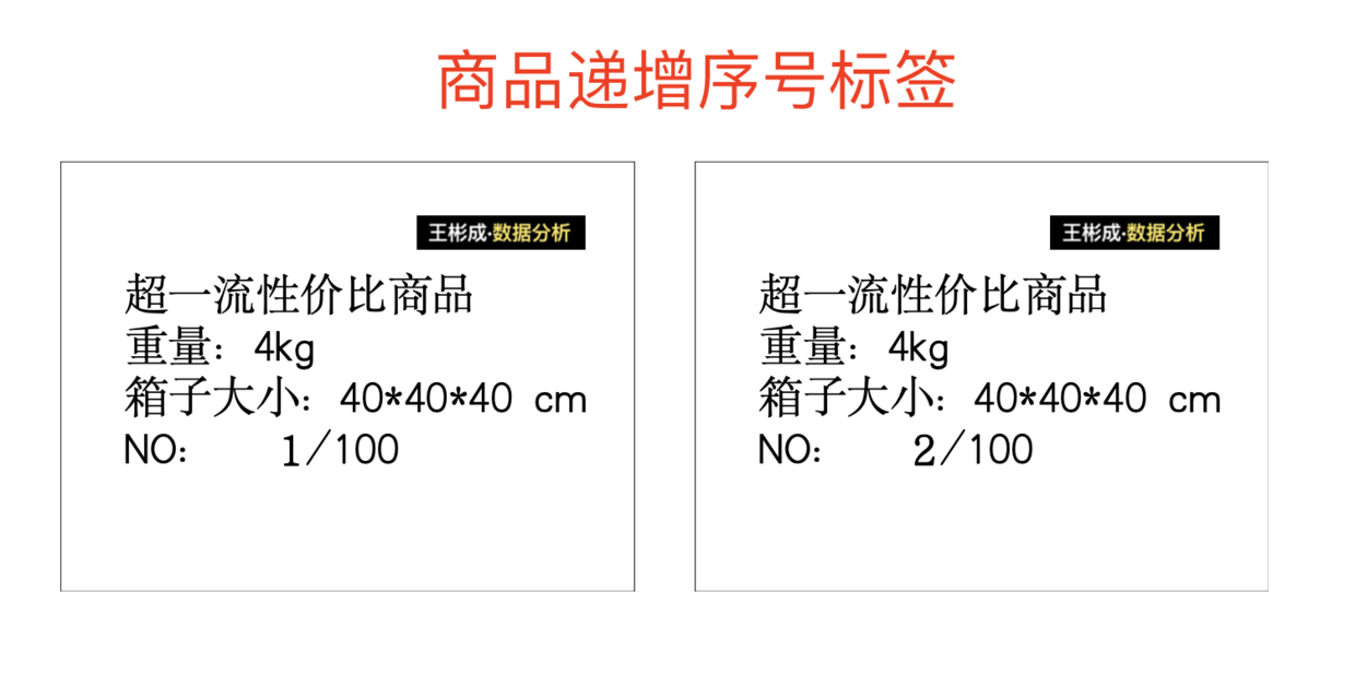 在生活中,有很多用到递增序号标签的场景。比如比赛运动员号码牌,货物外箱序号标记标签,等等。这些标签都有相同的特征,就是,货物信息内容是一致的,唯一的差别在于【序号】的不同。