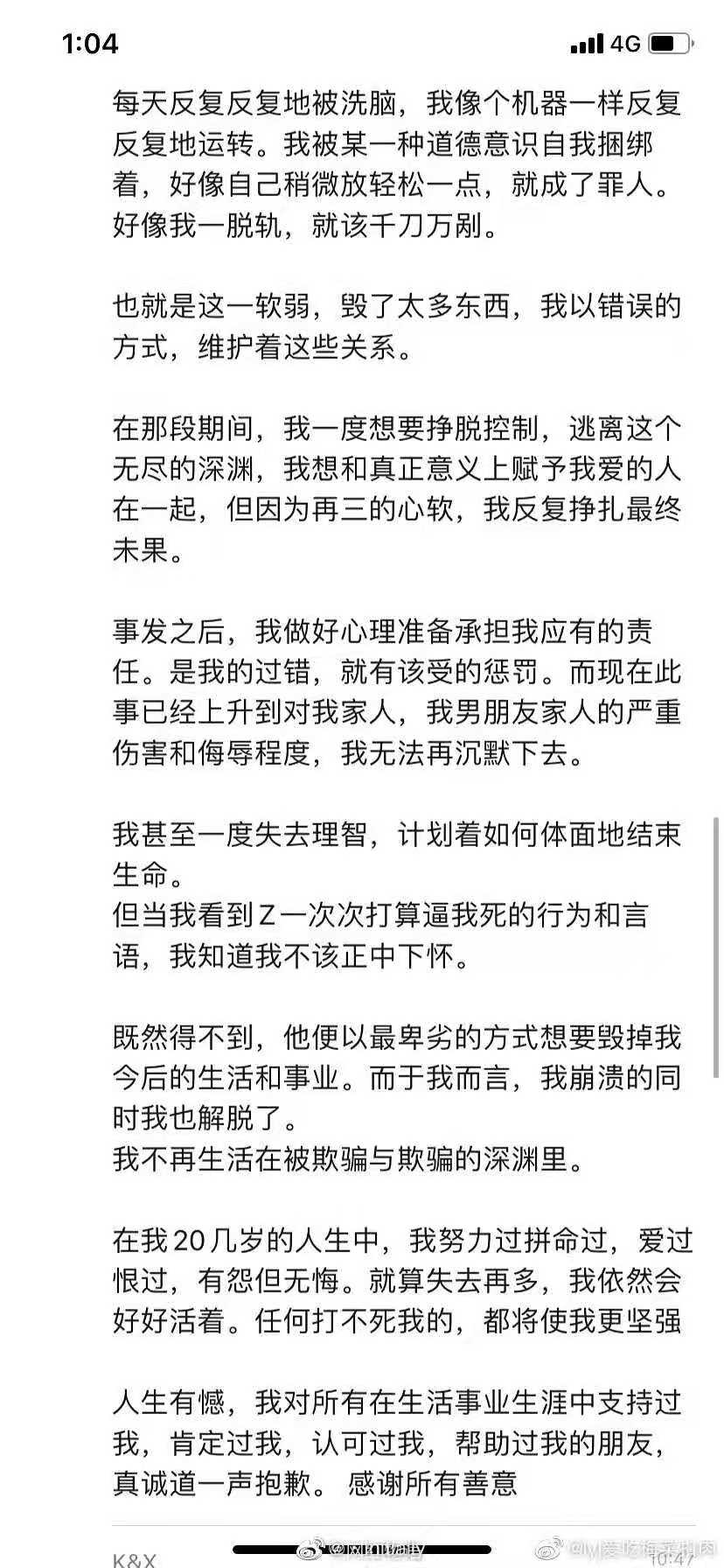 4月15日,网上出现了女方的一个回应。