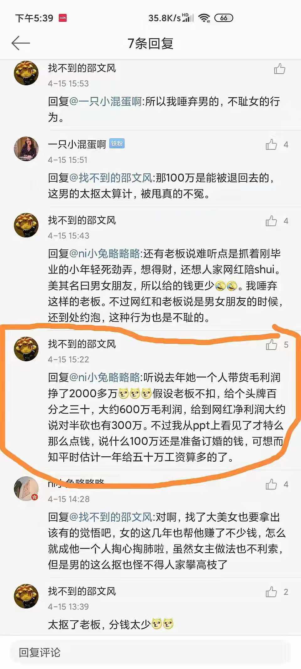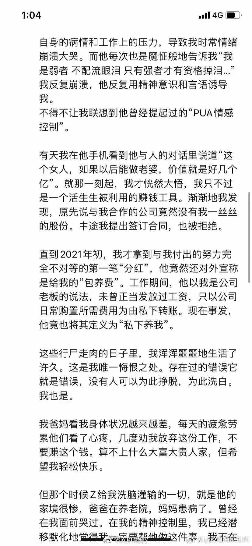 2、女方作为头部主播,或者说是公司的股东之一,从来没有拿到和她身份相匹配的分红。甚至男方以女方是合伙人的身份,没有发过工资,只发社保。