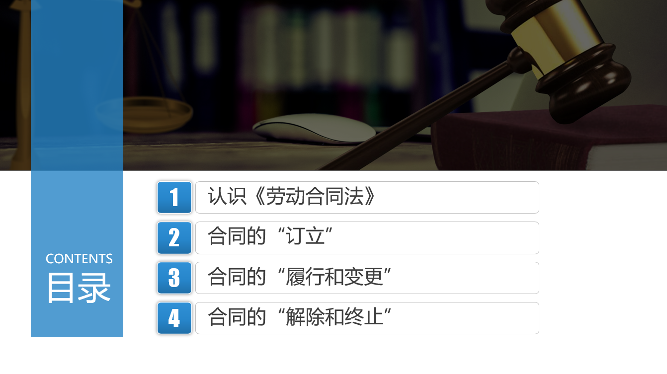 5.メメ从四个方面进行讲解,认识法律,合同的订立,履行和变更,解除和终止