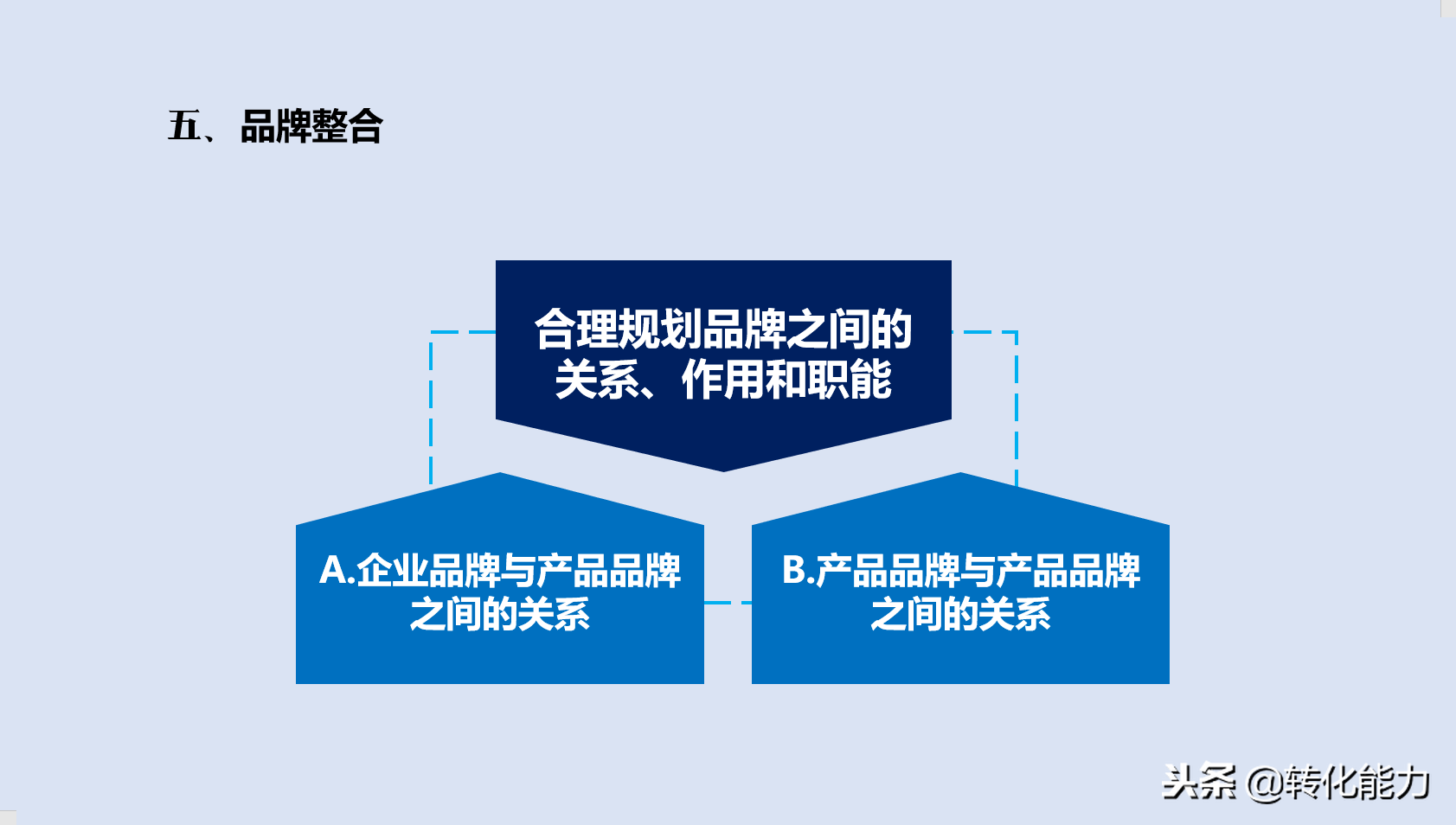 五、品牌整合:清晰界定公司品牌与产品品牌以及产品品牌之间的 作用、关系和职能。