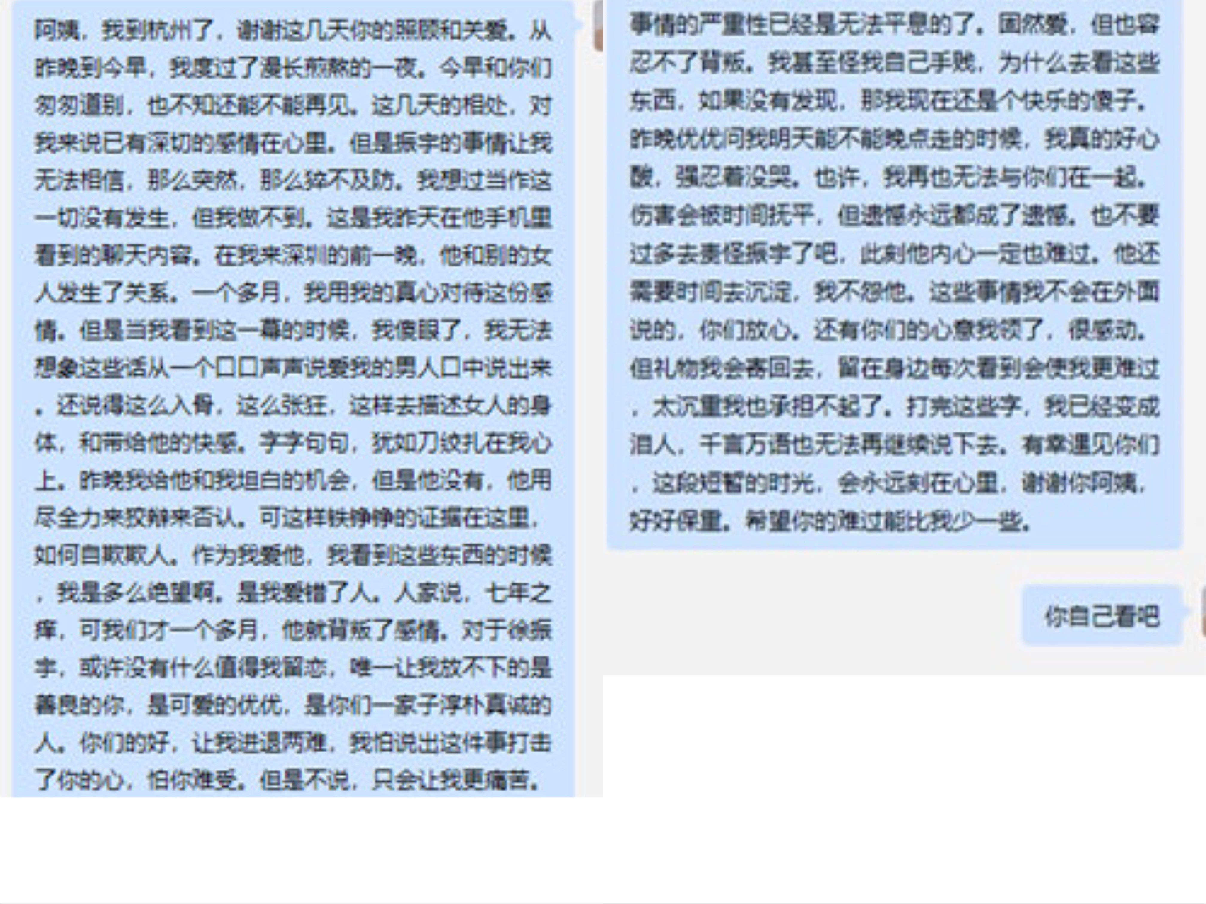 但以上内容全是来自于65页ppt,项思醒则表示称这纯粹是造谣,说自己被张科峰当做赚钱工具甚至还被其PUA最后导致抑郁,主要强调了银行流水的钱是公司日常购置费用,和张科峰一起旅游是为了选品和拍照,作为公司创造效益的主力没工资没分红只有10%的股份,明明应该领取的分红张科峰却说是彩礼钱,甚至还起诉张科峰以不正当科技手段窃取她WX里所有的聊天记录。但这样不就更加默认了张科峰的所有爆料截图全部为事实吗?