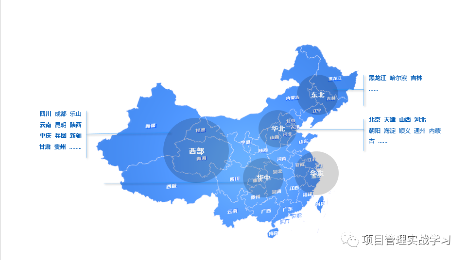图5:地图展示模板,表达客户的分布或者产品的市场占有率等场景时,通过地图标注的形式展示是比较好的选择!