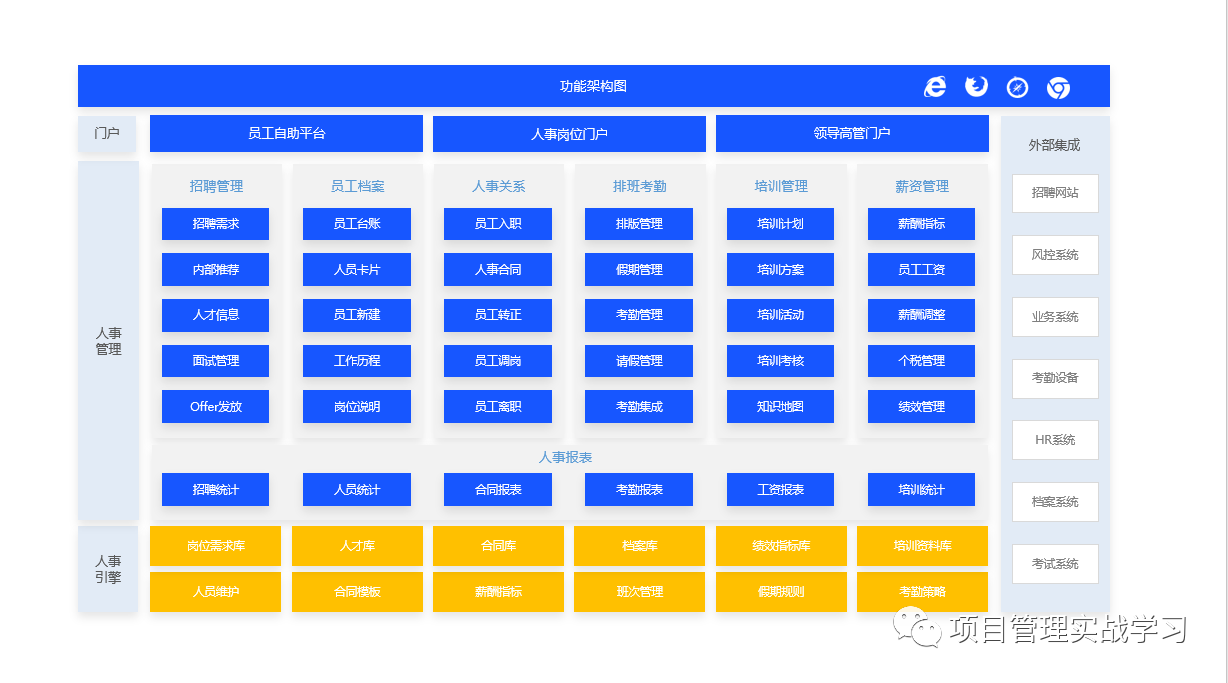 图3:功能结构图,从纵向和横向两个方面说明,包括外部集成和内部功能结构!