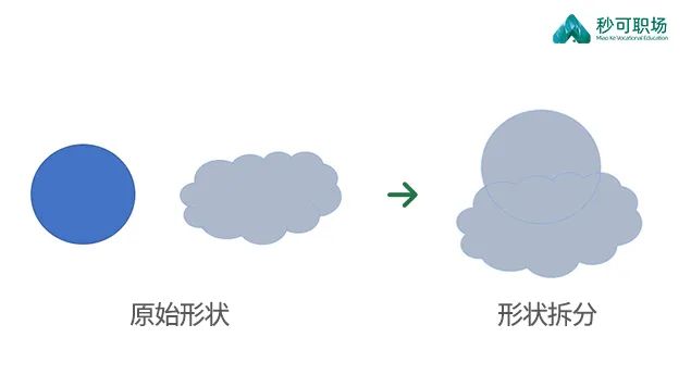 如下GIF,同样把圆形与云形进行拆分,就会形成 三种形状: