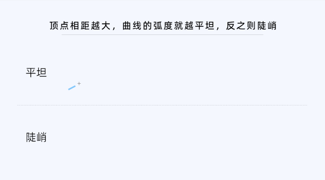 相邻的两个顶点距离越大,弧度就越平坦,反之则越陡峭: