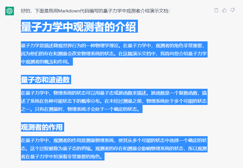 其最大的特点就是支持chatGPT或其他AI输出markdown格式导入生成PPT。例如在ChatGPT或是其他AI对话模型中创建提示语,“用markdown方式输出”,等待AI进行生成。