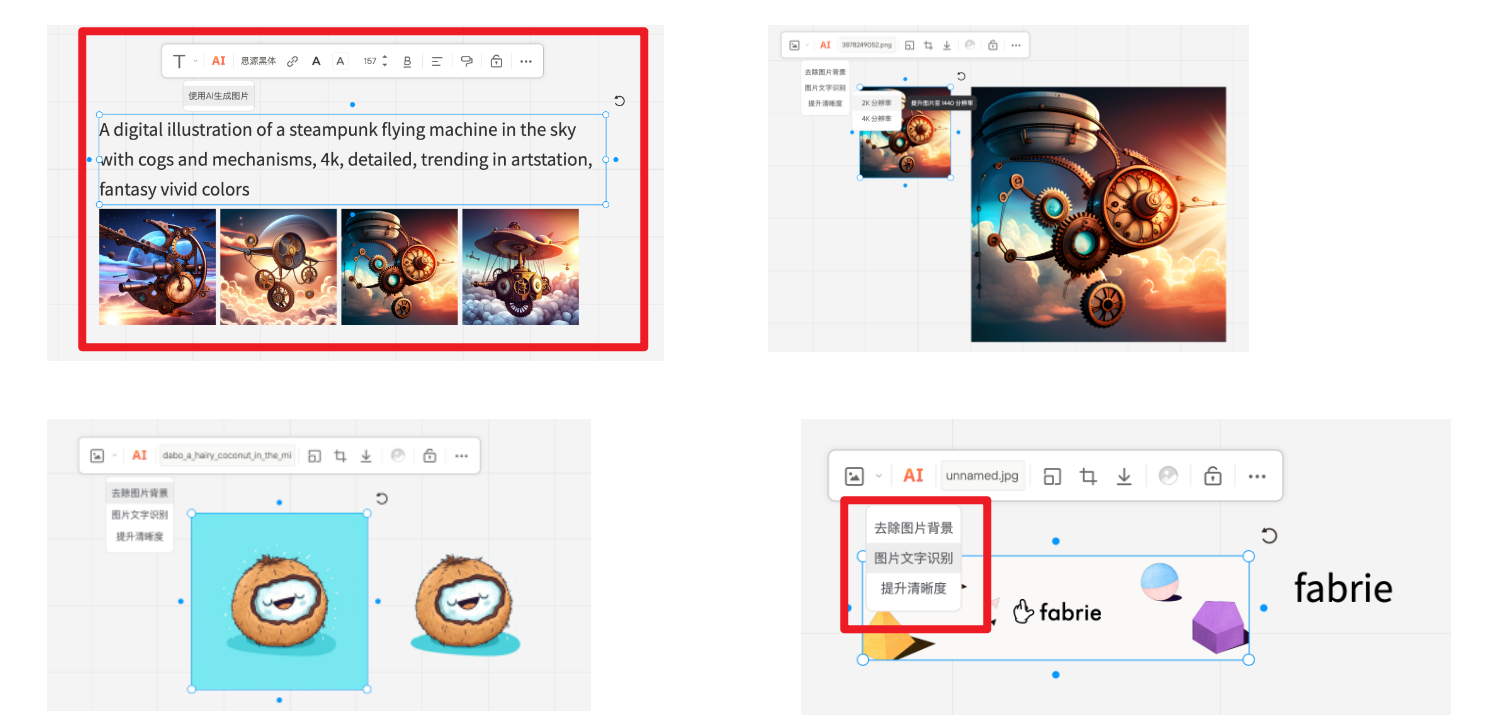 Fabrie AI目前开放内测,支持AI文字转图片,支持图片OCR、智能去除背景和提升分辨率(最高支持4K高清)。