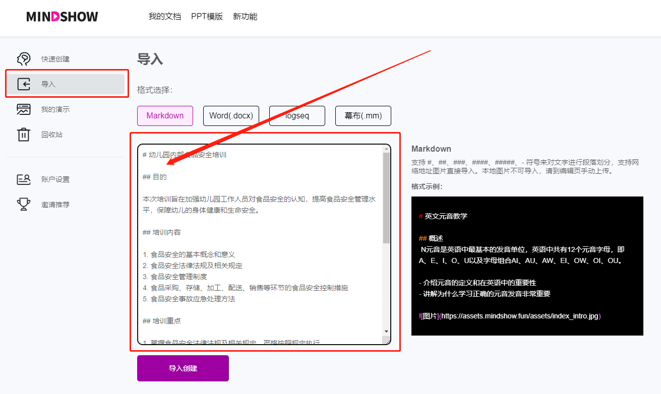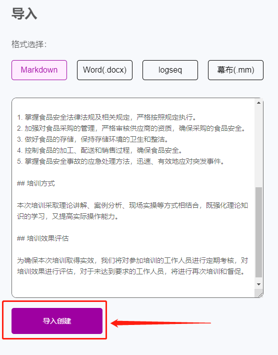 默认即是markdown格式导入,直接在文本框中粘贴复制的内容