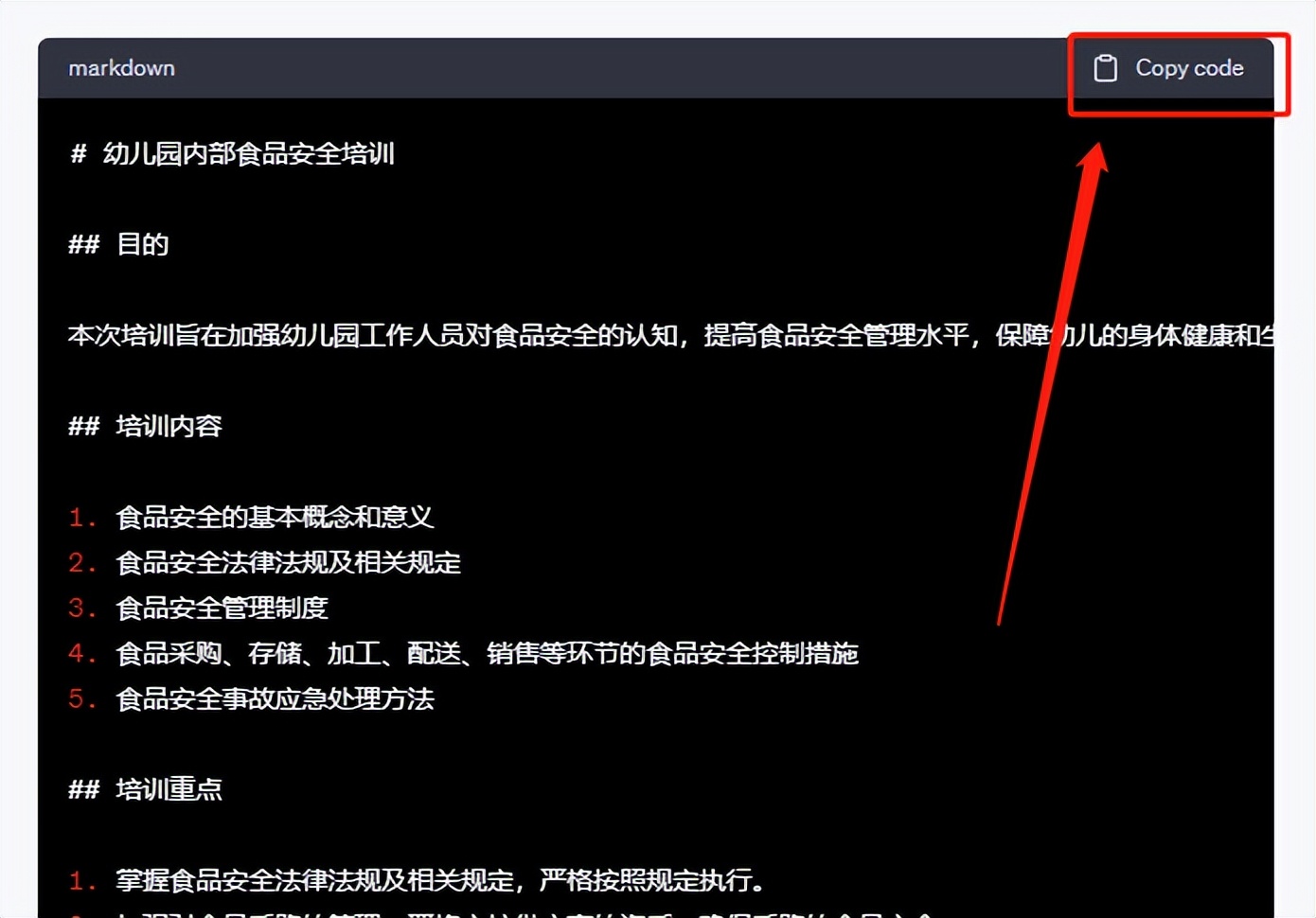 标志就是代码块输出,右上角点击“copy code”进行复制