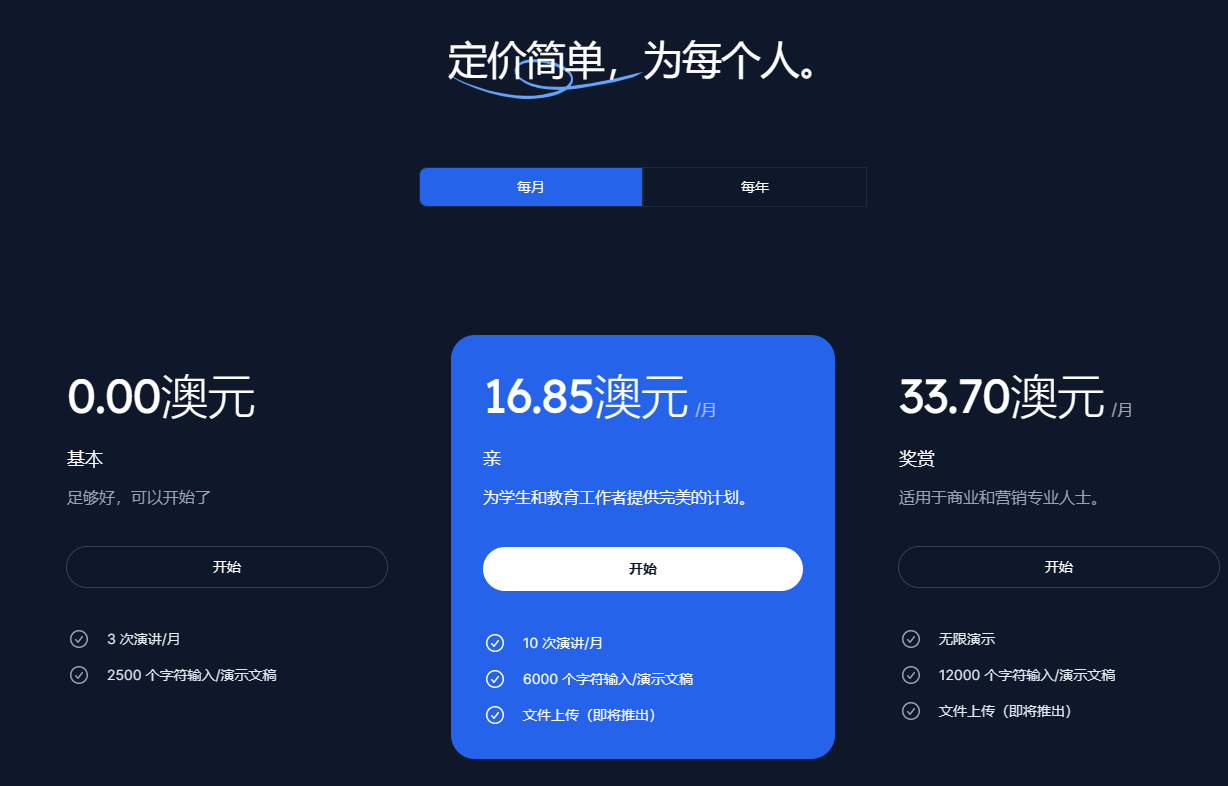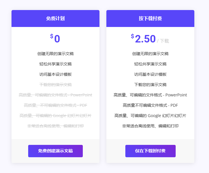 不足:需要谷歌帐号,采用谷歌文档存储,剩下的你懂的;免费版PPT生成最多3个文档,每个文档支持2500字文本输入。