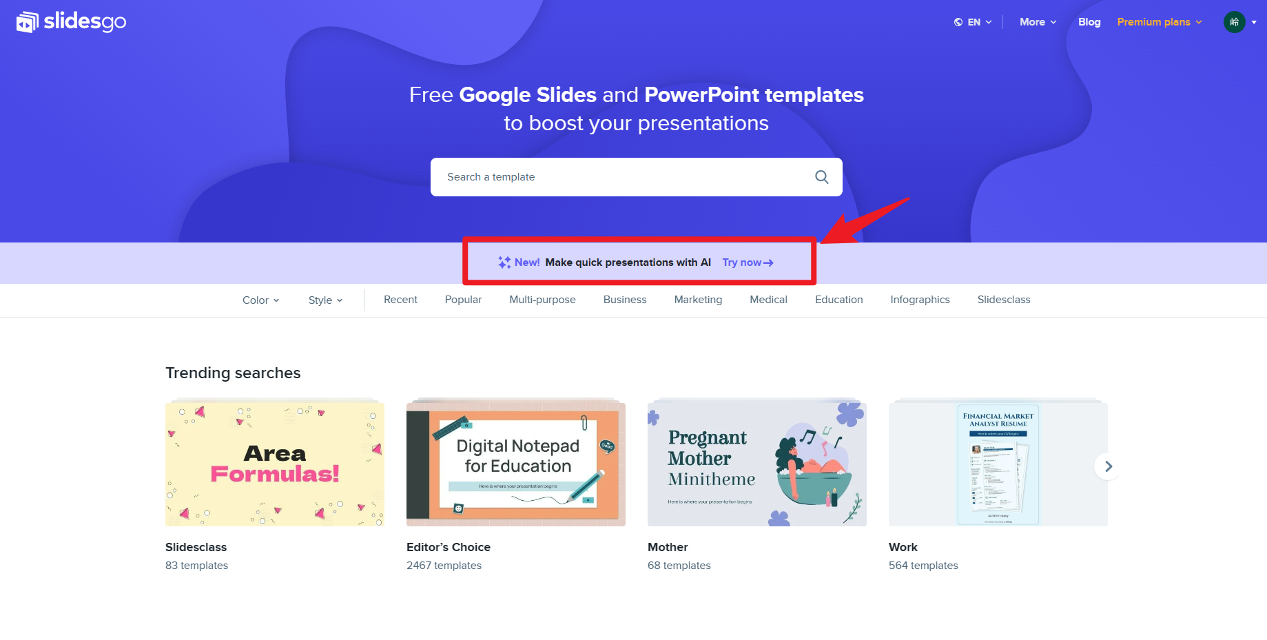 近期,Slidesgo上线了内测的AI幻灯片制作功能,免费用户也可以直接体验。