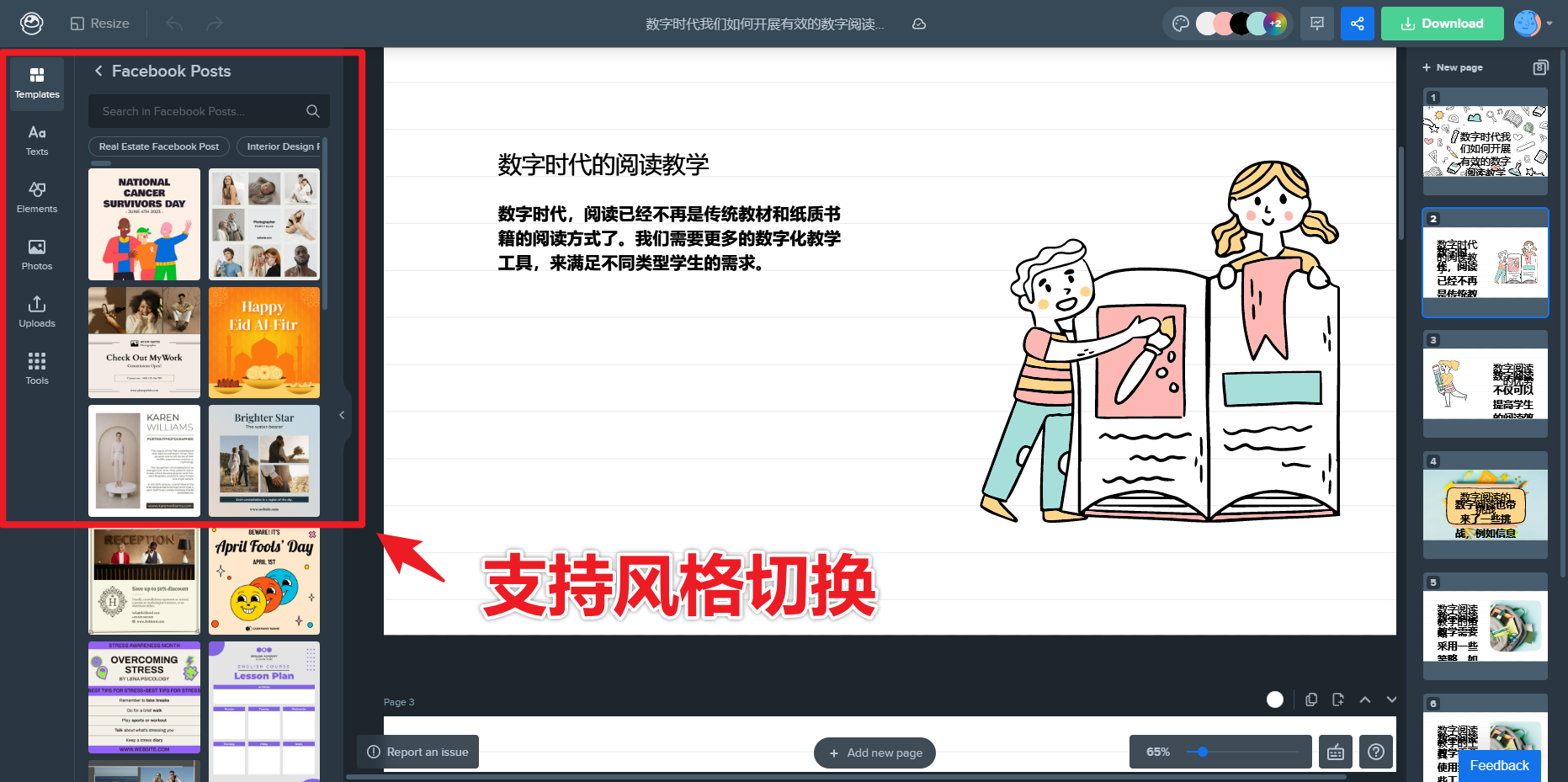 优点:图文皆可AI生成,编辑功能更加强大,模板选择更加多元。