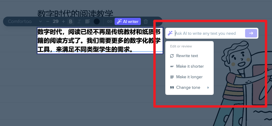 最重要的是,只要选中PPT中的文本就可以使用AI对内容进行改写扩写和缩写,而且目前还是不限次数的那种。