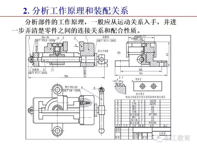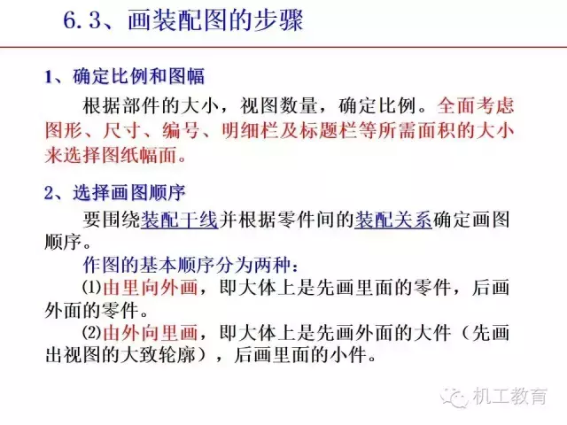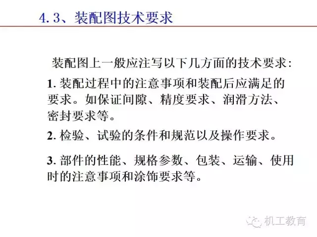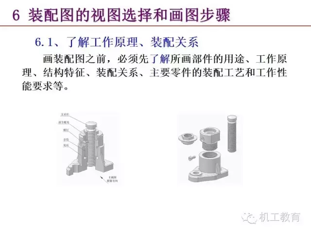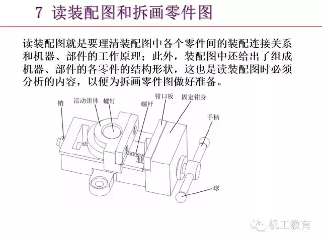 1.装配图的所有知识,都在这50页PPT里了内容节选自姚春东《工程制图基础》课件推荐阅读书名:工程制图基础作者:姚春东 王巍 主编ISBN:978-7-111-53672-7定价:39.8本教材根据教育部工程图学教学指导委员会最新修订的《普通高等院校工程图学课程教学基本要求》并结合当前CDIO教学改革的实践,参考了国内外精品教材的写作思路,在总结了编者多年教学经验的基础上编写而成