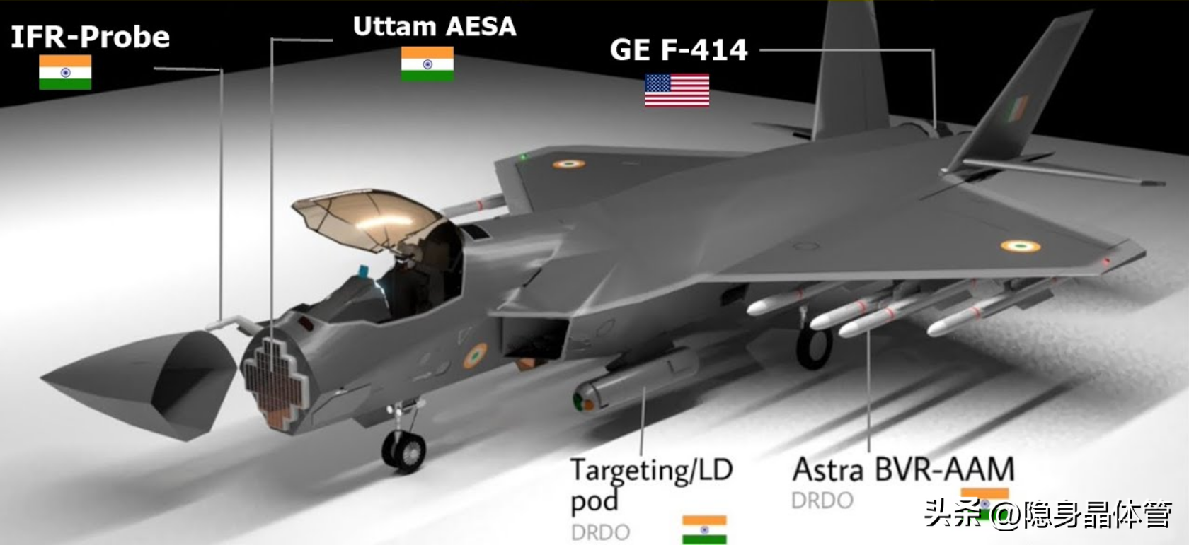 印度五代机MACA的炒作,已经有十几年了,据说首块钛合金部件已经在去年7月13日切割,原计划今年推出首架原型机,明年开始试飞,但是毫无意外地又推迟了。不过,在PPT上,AMCA却是功力大涨,最近有图片显示,它已经“打开了弹舱”。