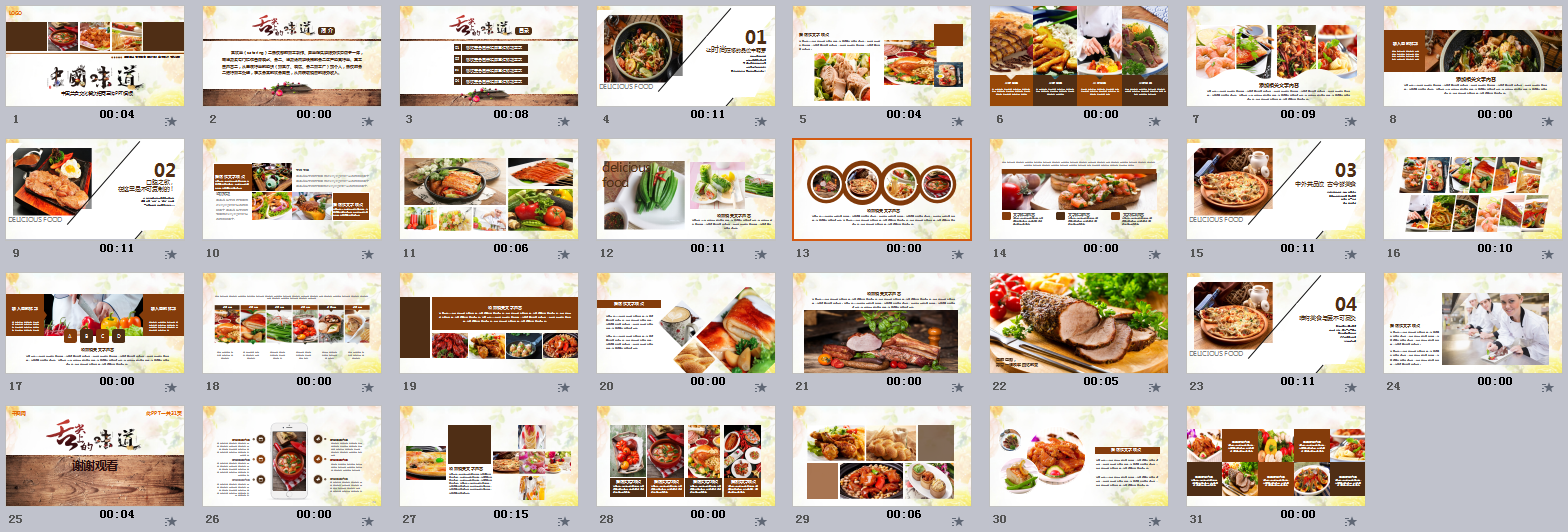 メ大家请看范例图片,中国美食PPT模板,精美插图设计,完整框架格式。メ