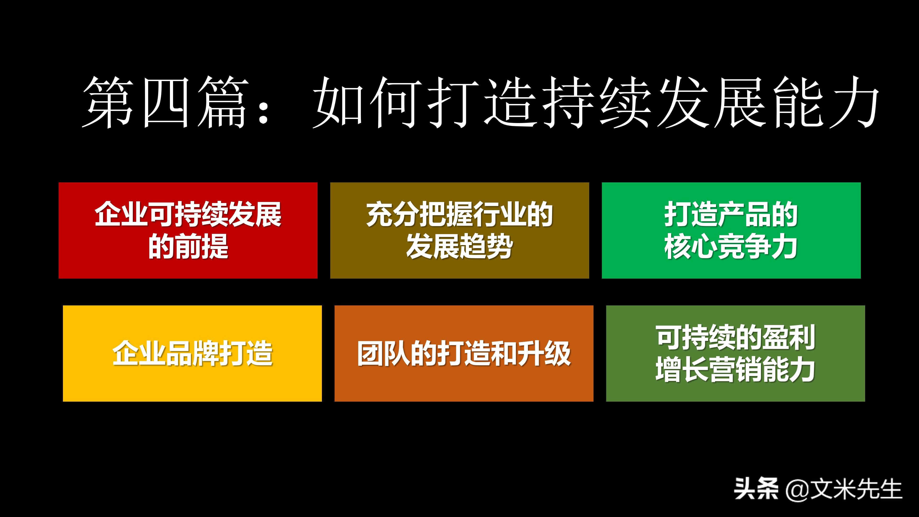 4、持续发展之术:赚钱是根本,如何持续赚钱,良性发展更是企业战略规划的核心。