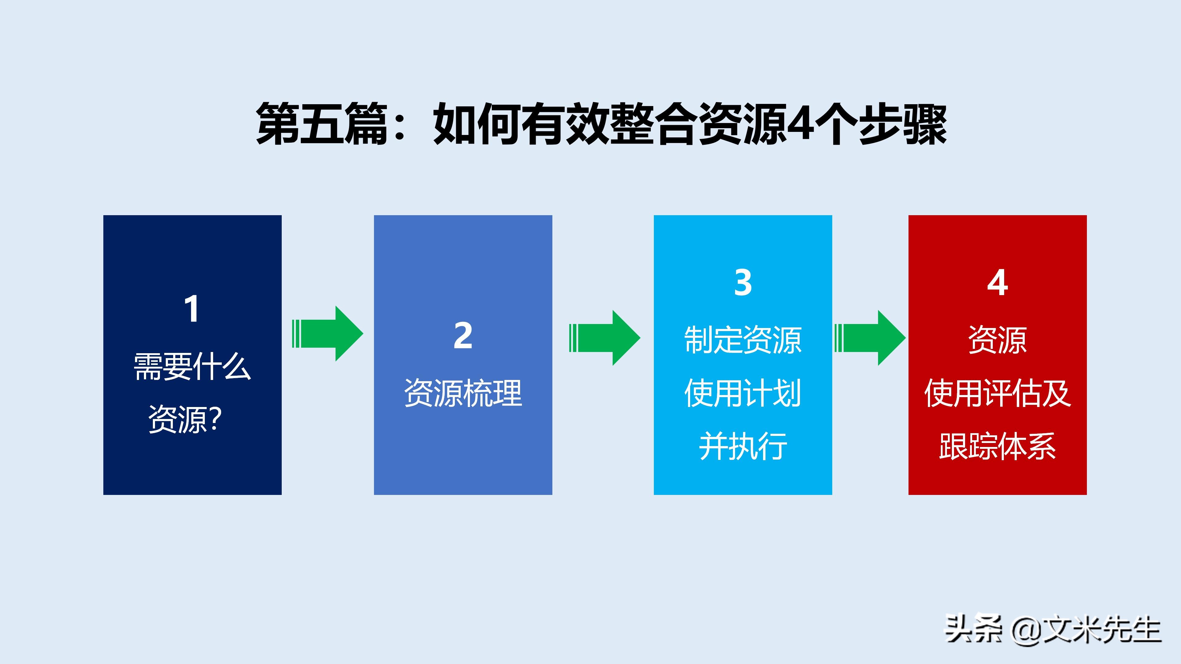 5、资源整合之术 :每个人都要资源,企业家有企业家的资源,社会资源,人脉资源,行业资源等等,如何让资源有效使用?