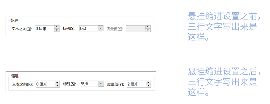 你看,设不设置「悬挂缩进」,根本没有区别嘛:
