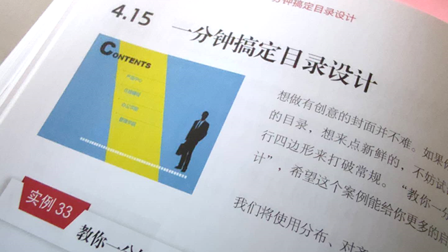 例如第4章排版章节末尾的综合性案例,目录页制作,第3版的案例是这样的,似乎还能看出来些许「剪贴画」时代的影子: