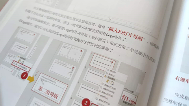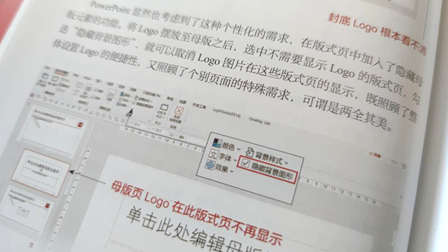 又比如在母版和版式部分,讲解利用母版全局添加logo时,如何照顾封面封底等个别页面不添加logo的需求。第3版中的建议是「在母版视图中新建第二组母版」: