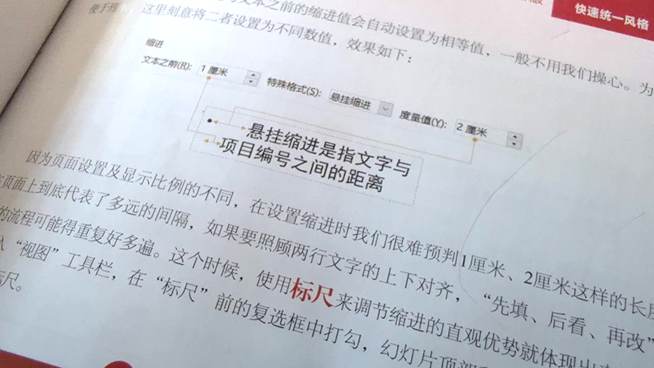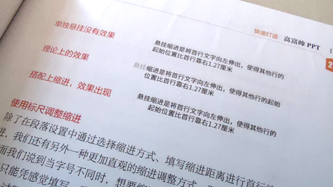 在文字排版环节讲到「悬挂缩进」时,第3版有一个明显的知识性错误(延续了第2版的说法),就是把「悬挂缩进」解释为「文本与项目符号之间的间距」: