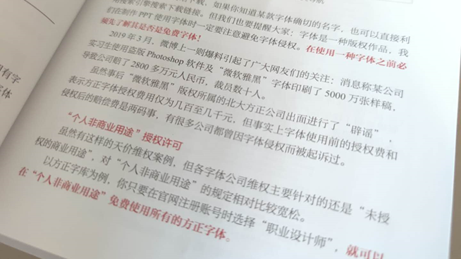 例如在讲解字体版权时,第3版是直接沿用了之前的写法,写了一大堆「专业词汇」,虽然严谨,但对读者非常不友好:
